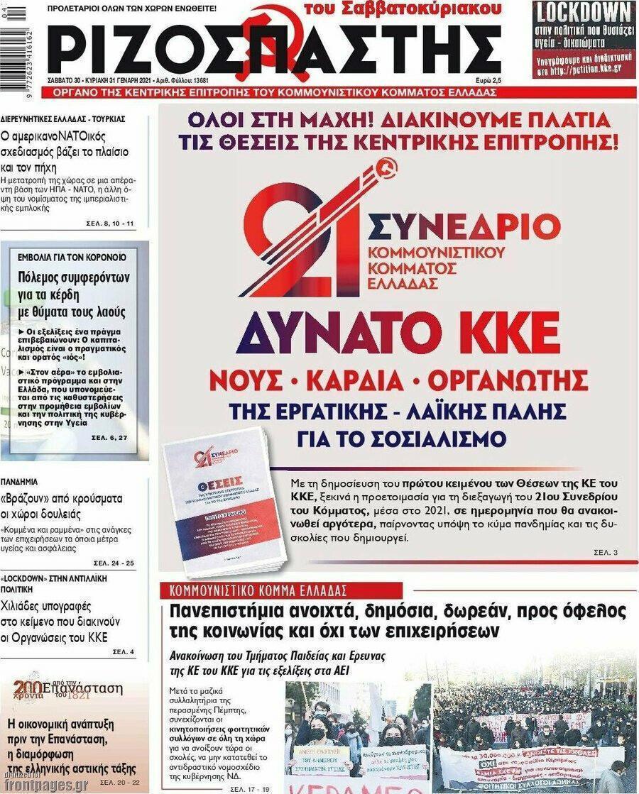 Στα μέσα του Φλεβάρη ολοκληρώθηκε η δημοσίευση με τον «Ριζοσπάστη» του Σαββατοκύριακου, σε μορφή ένθετου, των θέσεων της Κεντρικής Επιτροπής του Κομμουνιστικού Κόμματος Ελλάδας για το 21ο Συνέδριο, που θα διεξαχθεί μέσα στο έτος που διανύουμε. Πρόκειται για τρία κείμενα που περιλαμβάνουν 149 στον αριθμό θέσεις, ανεπτυγμένες με τεκμηριωμένο και αναλυτικό τρόπο, με παραπομπές σε επίσημα στοιχεία καθώς και σε έγκριτη βιβλιογραφία. Ένα πολυσέλιδο πόνημα που κυκλοφόρησε σε τρία αυτοδύναμα έντυπα μέρη, συνοδεύοντας την πλατιά εξόρμηση της εφημερίδας «Ριζοσπάστης» για τρία συνεχόμενα Σαββατοκύριακα (30-31 Ιανουαρίου, 6-7 και 13-14 Φεβρουαρίου 2021). Ένας απολογισμός με σπουδαία συμπεράσματα από τη δράση της Κεντρικής Επιτροπής, καθώς και όλου του Κόμματος, από το 20ο στο 21ο Συνέδριο. Με τη δημοσίευση των θέσεων αυτών έχει ξεκινήσει και ο προσυνεδριακός διάλογος που φιλοδοξεί να βρει απήχηση στα πλατύτερα λαϊκά στρώματα, και όχι μόνο, της ελληνικής κοινωνίας. Με μία προσεκτική ανάγνωση των θέσεων, και των τριών δηλαδή κειμένων, γίνεται εύκολα κατανοητό πως η πολιτική δράση του ΚΚΕ βρίσκεται σε πλήρη ρήξη με την κυρίαρχη πολιτική των κομμάτων εκείνων που εκπροσωπούν με τρόπο απροκάλυπτο πολλές φορές τα συμφέροντα της αστικής τάξης, περιφρουρώντας τη «νομιμότητα» στα κέρδη και τον πλούτο των ολίγων σε βάρος των πολλών, συντηρώντας τους ταξικούς διαχωρισμούς μέσα στην κοινωνία, ώστε να υπάρχουν πάντοτε εκμεταλλευτές και εκμεταλλευόμενοι, πλούσιοι και φτωχοί. Σε πλήρη επίσης αντίθεση βρίσκεται με εκείνες τις αυτοαποκαλούμενες «αριστερές» δημοκρατικές δυνάμεις, που με τρόπο οπορτουνιστικό, δηλαδή συμφεροντολογικό και ευκαιριακό, και σε απόλυτη συμμόρφωση με αυτή την περίφημη «αστική νομιμότητα», συμμαχούν μέσα σε κλίμα ευνοιοκρατίας, προκειμένου να γαντζωθούν στην εξουσία, διαχωρίζοντας εξ ολοκλήρου τη θέση τους από τον λαό, τα τρέχοντα προβλήματά του και τις σύγχρονες ανάγκες του. Το ΚΚΕ πάντοτε ενιαία και αδιαχώριστα με τον ελληνικό λαό, είναι η ανώτερη, η πιο συνειδητή έκφραση του εργατικού κινήματος, αφού η καρδιά του χτυπά καθημερινά μέσα στους χώρους δουλειάς, και η στρατηγική του, η πολιτική του στάση, αταλάντευτες πάντοτε, συνδιαμορφώνονται με τρόπο συλλογικό, από τα κάτω προς τα πάνω, με αφετηρία το «μεγάλο καμίνι» της εργατικής τάξης. Τα τρία κείμενα των θέσεων, αποτέλεσμα μιας βαθιάς και συστηματικής θεωρητικής, ιδεολογικής, πολιτικής, οικονομικής και επιστημονικής εργασίας, εκφράζουν μια συμπύκνωση της δράσης του ΚΚΕ, έναν απολογισμό στον χρονικό ορίζοντα της τελευταίας τετραετίας, μία αυτοκριτική με βασικό συστατικό την καθαρή ειλικρίνεια μιας ανιδιοτελούς προσπάθειας, έναν επαναπροσδιορισμό της στάσης και του ρόλου του ως επαναστατικό κόμμα μέσα στην ελληνική κοινωνία ως αναφορά τις τρέχουσες πάντοτε συνθήκες ζωής.