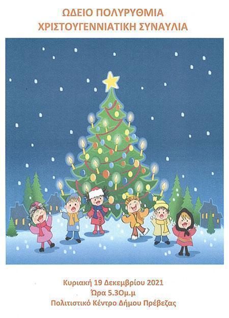 Χριστουγεννιάτικη Συναυλία θα πραγματοποιηθεί από το Ωδείο Πολυρυθμία την Κυριακή 19 Δεκεμβρίου στις 5.30 μ.μ στο Πνευματικό Κέντρο Δήμου Πρέβεζας. Στην εκδήλωση θα παρουσιασθούν οι μαθητές της Μουσικής Προπαιδείας, του Κιθαριστικού Συνόλου, του Συνόλου Βιολιών, της Ορχήστρας Μetalofonix, του Συνόλου Κρουστών καθώς επίσης και οι μικροί μαθητές της Προκαταρκτικής όλων των οργάνων παρουσιάζοντας Χριστουγεννιάτικες μελωδίες. Ευχές και γλυκά θα περιμένουν μικρούς και μεγάλους !!!!!!!!!