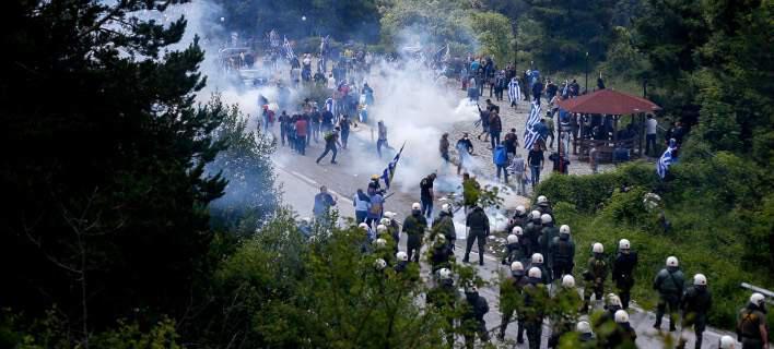 Στα μπλόκα της αστυνομίας στο Πισοδέρι, εκεί που συγκεντρώθηκαν χιλιάδες κόσμου, για να διαμαρτυρηθούν για τη συμφωνία με τη Μακεδονία, σημειώθηκαν εντάσεις με ξύλο και ρίψεις αντικειμένων.