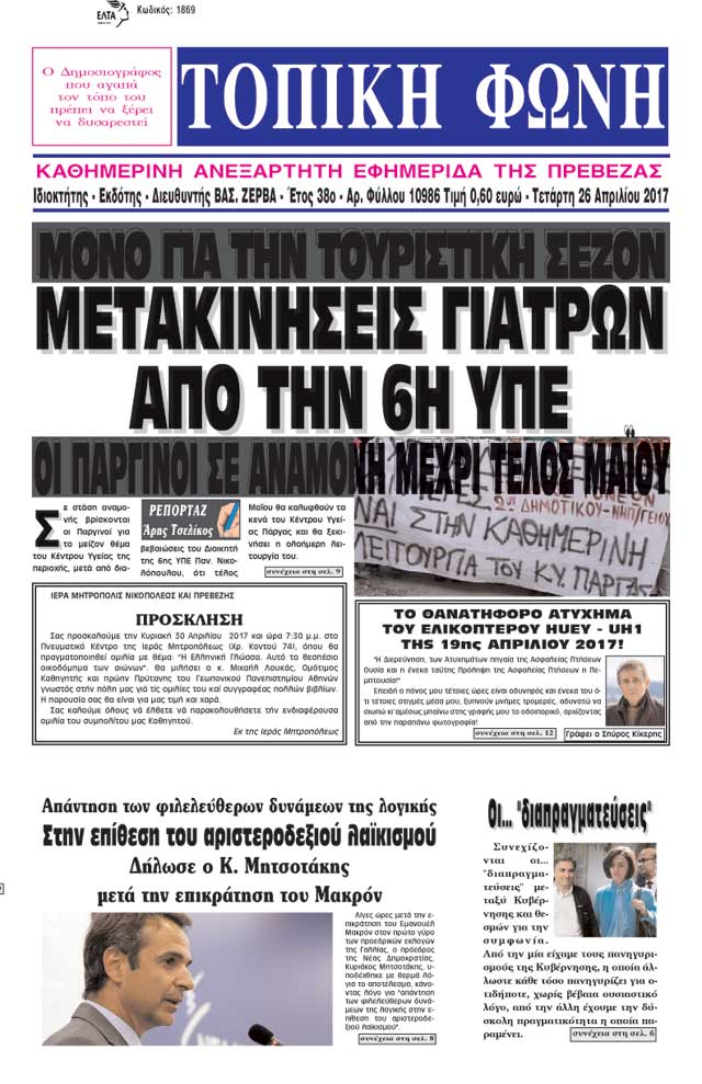 Καθημερινή Ανεξάρτητη Εφημερίδα της Πρέβεζας