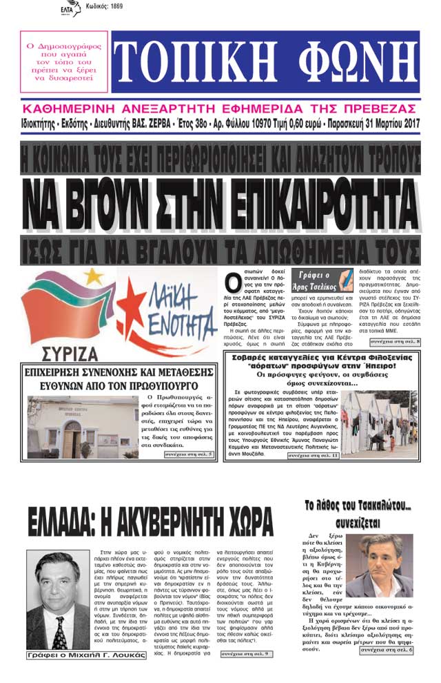 Καθημερινή Ανεξάρτητη Εφημερίδα της Πρέβεζας